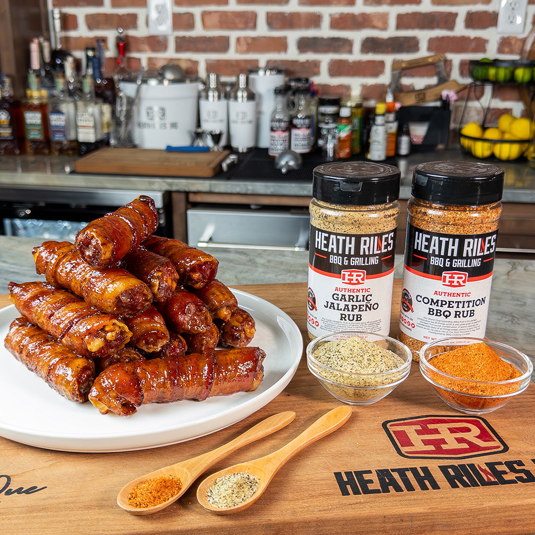 Bacon-wrapped manicotti stuffed with seasoned beef, Italian sausage, jalapeΓ±os, and cheddar, then smoked at 300Β°F and finished with a sweet heat glaze for a bold, crowd-pleasing barbecue appetizer.